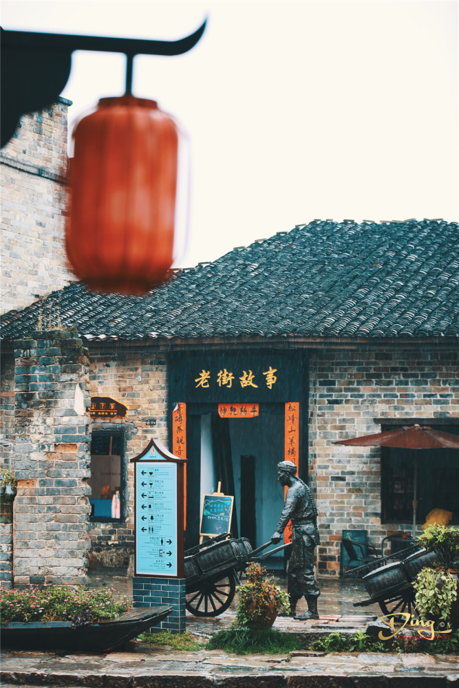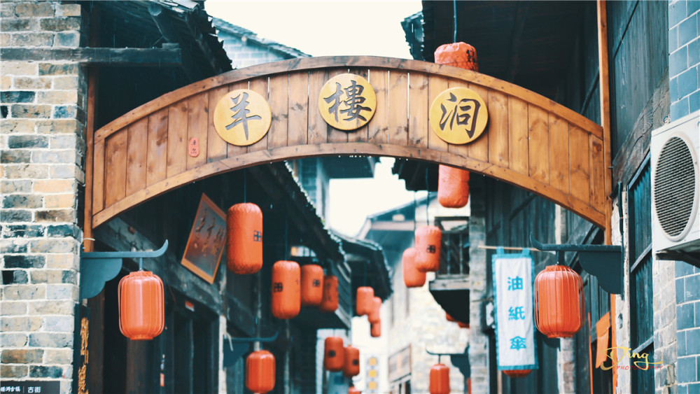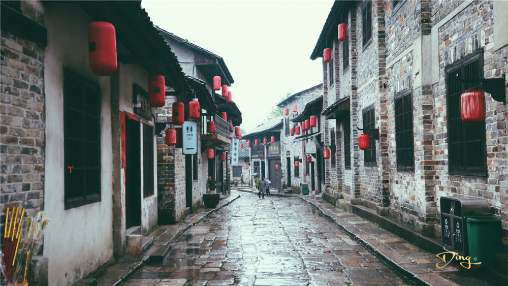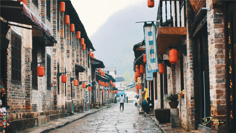 Chibi Yanglou Cave Mingqing Ancient Street in the misty rain is clear and blurred.