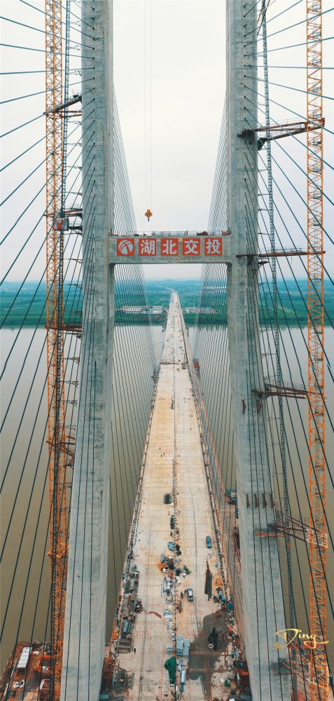 The Chibi Yangtze River Highway Bridge has a total length of 11.2 kilometers, of which the Yangtze River Bridge is about 3.35 kilometers long. It is the largest steel-concrete fully-combined beam cable-stayed bridge in the world.