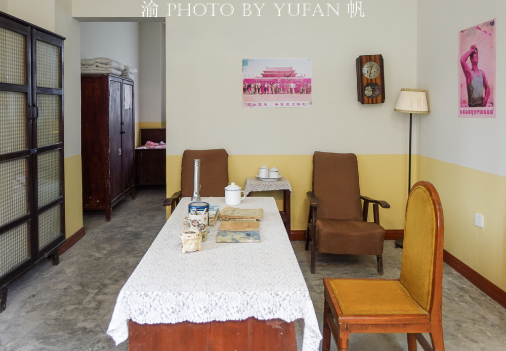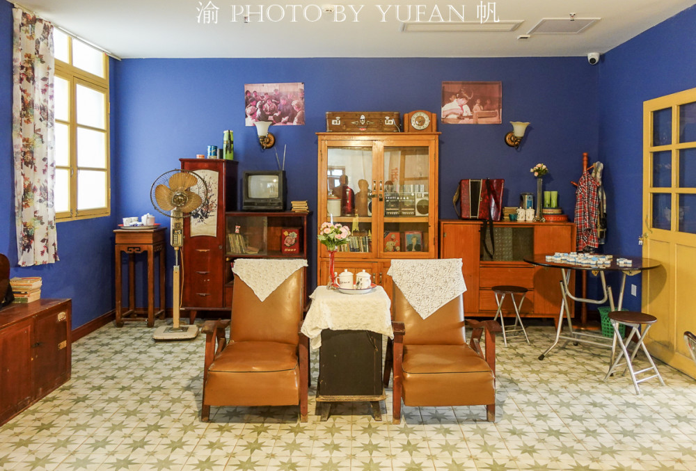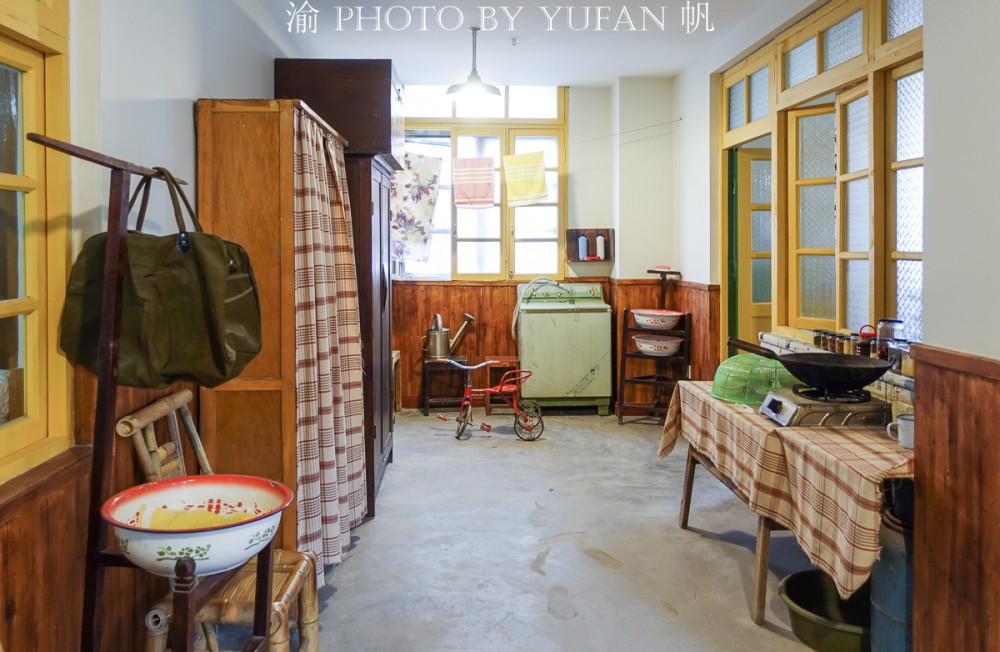 For example, in this family pavilion in the 1960s and 1970s, simple furniture, old kettles, porcelain bowls, sewing machines, etc., are in it as if you are traveling through it.