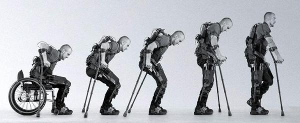 ▲California Institute of Technology researchers use exoskeleton robots for walking demonstrations