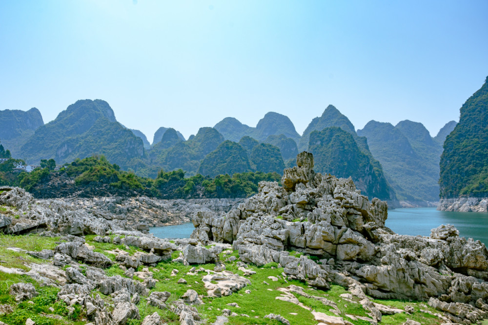 The water stone forest of Wanfeng Lake is also its core landscape. The stone forests are distributed on the lakeside, small and beautiful, reflecting on the mountain peaks, showing their unique charm.