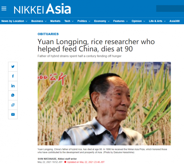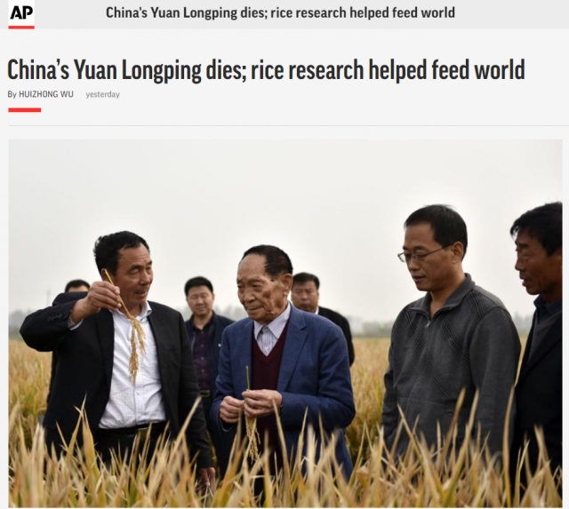 On May 22, the “father of hybrid rice” Yuan Longping passed away. The international community expressed great concern, and many foreign media reported immediately.