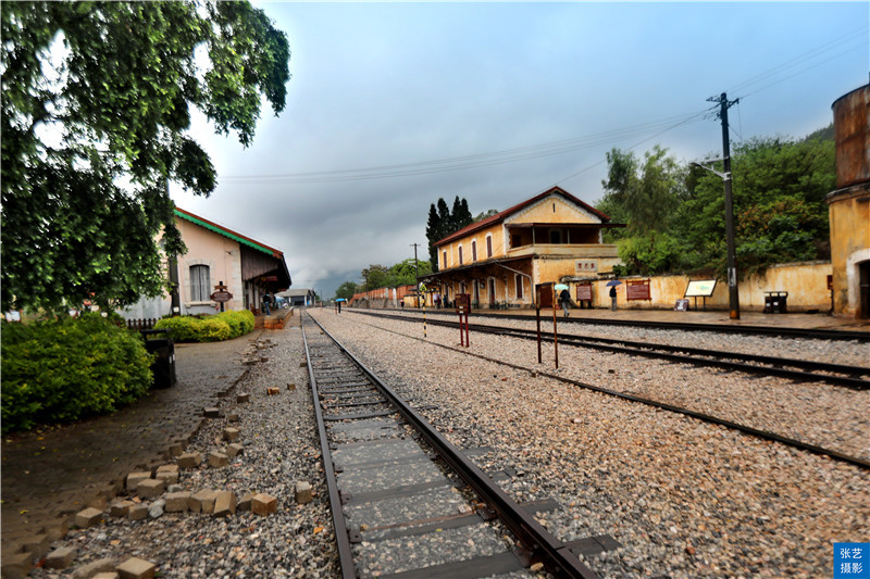 The two-story French building of the railway station is arranged as a historical exhibition hall, where you can see many precious photos and historical artifacts. In front of the building is a wooden slatted chair, a double-sided clock with “Paris” made in Paris hangs on the door, and the windows are wooden shutters. The two two-story western-style buildings on both sides of the railway are beautiful in design and construction, and the staggered railway lines in front of the building are beautiful objects captured by photographers.