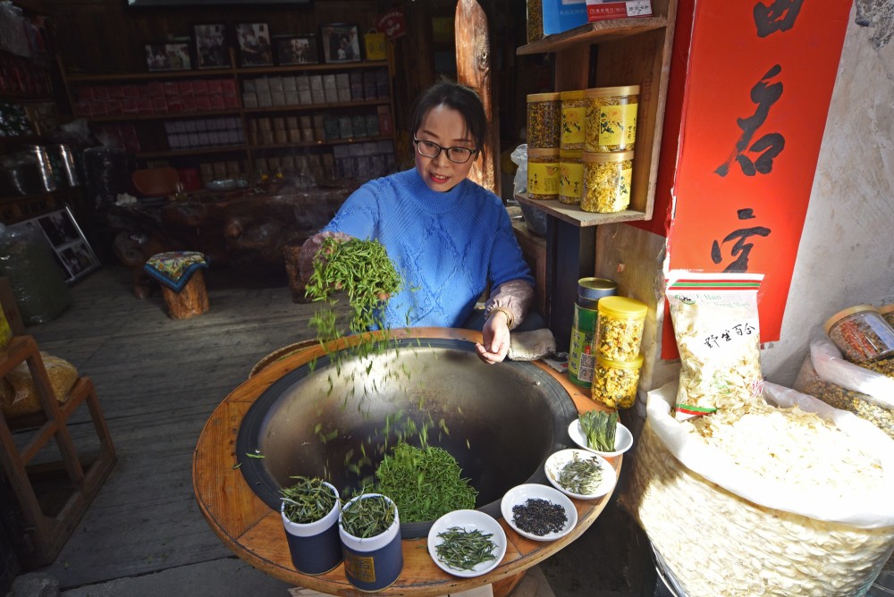 It is said that good mountains and rivers produce good tea. Huizhou has always been a famous tea producing area. Apart from restaurants and supermarkets, a large part of the stores along the streets of Hongcun are selling specialty products, especially tea. The newly picked Mingqian tea is on site. Stir-fried, fragrant all over the street, savor a cup of fragrant tea, fragrant refreshing.