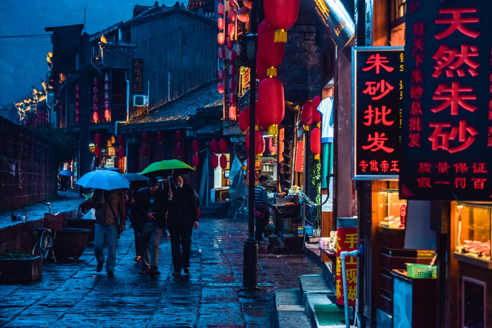 The ancient city of Phoenix in Jishou only returned to the taste of a small mountain town in the rainy season. The passers-by sheltering from the rain, the quiet bluestone road, bid farewell to the hustle and bustle of business atmosphere, this is probably the appearance of the mountain city that people are looking forward to. If the rain is heavier, simply want a room on the mountain, overlooking the appearance of the mountain city in the rain.