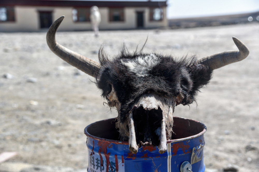 In addition to being a viewing platform, Kazila Mountain is also a resting spot on the Sichuan-Tibet line. Many people urinate and urinate anywhere on the Sichuan-Tibet line. If you think this behavior is unrefined, then don’t miss it. Public toilets, after all, the rest stops on 318 are not as widespread as in the mainland. While waiting for a friend to go to the toilet, I saw a bull skull on the side of the road. Is it still a little primitive and mysterious?