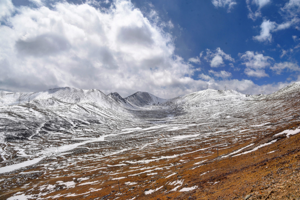 I mentioned that before arriving in Tibet, it will pass through the three counties of Yajiang, Litang, and Batang. The boundary between counties and counties in Tibetan areas can be different from that of the inland. They are basically high mountains. The Kazila Mountain at an altitude of 4,718 meters is Li. A mountain at the boundary of Tang County and Yajiang County. At this altitude, there are few trees growing, only patches of alpine meadows. Since spring has arrived, there is no snow and ice coverage here, and the meadows have begun to slowly turn green. Although spring is late in Tibetan areas, it will eventually come.