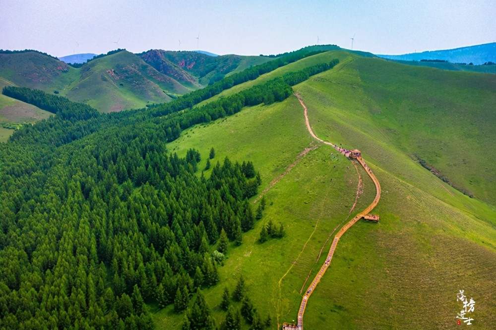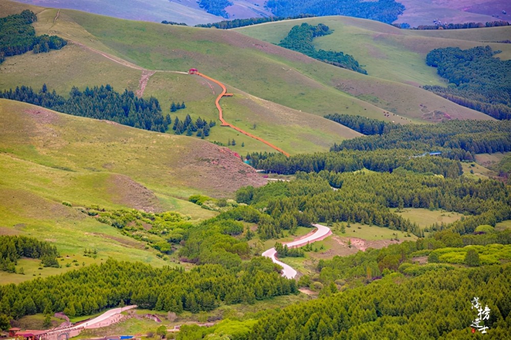 Take the small train in the scenic spot and pass through the jungle, the typical “dam on the dam” landscape is slowly unfolding in front of your eyes-on the low and undulating hillside, the forest stretches with the curve of the mountain, the forest is not continuous, and the middle is sparsely inlaid with grass Dian, the long plank road has been stretched to the distance, and the end seems to be connected to a mysterious place.