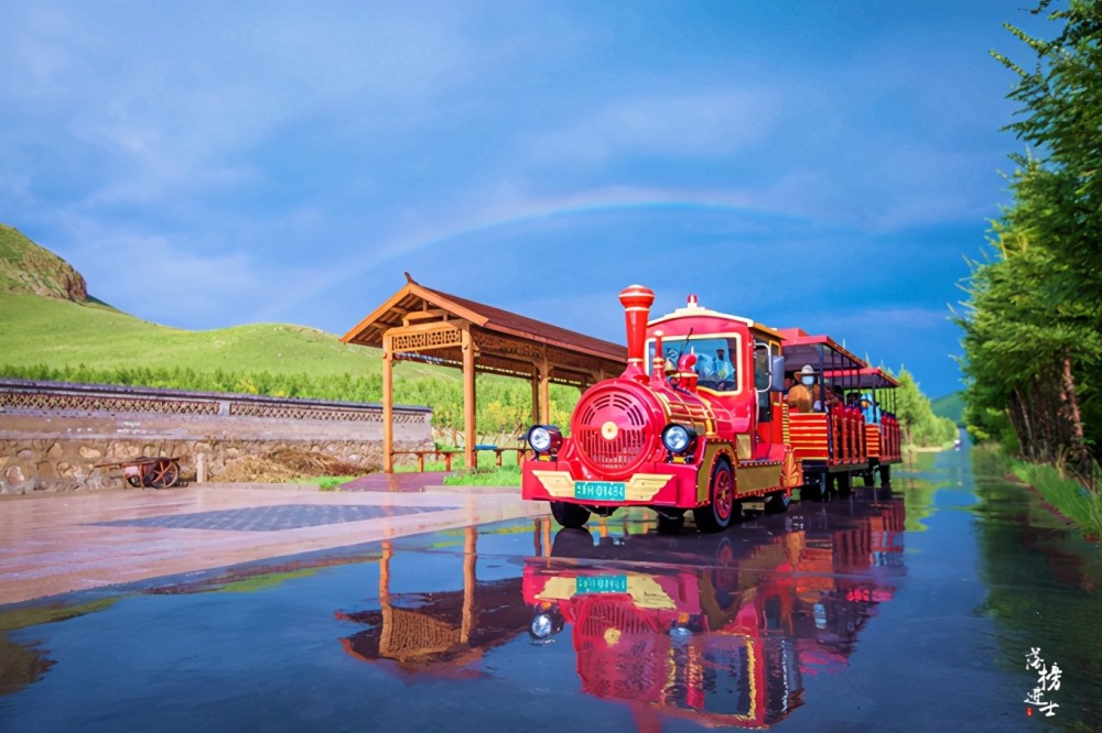 Perhaps it is because of the name “Colorful Forest”. The colors in the scenic area are extremely rich. Needless to say, the colors brought by nature. The artificial landscapes are also carefully crafted and matched, especially the cute and colorful trains. A rainbow appeared in the sky after the rain, and the small train was driving on the road, and the reflection in the water after the rain was even more eye-catching.