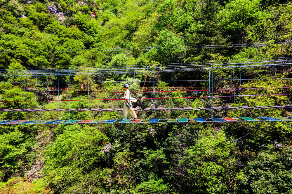 Step by step Jingxin Internet Red Bridge has been very popular in recent years, full of challenges and excitement, but don’t worry, the safety is very reliable, there are safety locks tied to the body, but walking on it, looking at the cliffs hundreds of meters high under your feet, Even people who are not afraid of heights will exclaim.