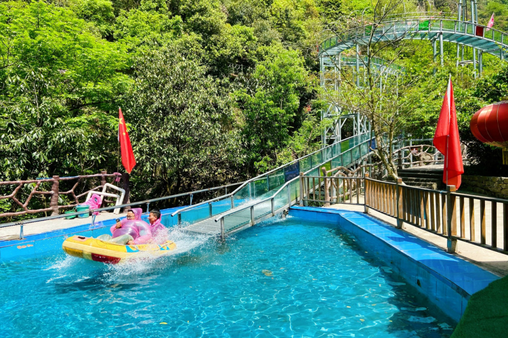 I have experienced glass slides before. Relatively speaking, I prefer the glass slides here. It is not only long, but also has a drop of more than 100 meters, and there are many bends in the middle, including s-shaped bends and u-shaped bends. Road, 360 circular bends. The drifting boat descends very fast, and the most exciting places are of course those corners. Speed bumps are also set up for safety. It is also the speed bumps that make the whole journey safe and exciting.