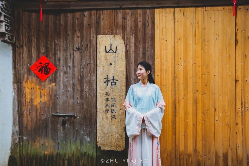 There are also many traces of cultural relics in the village, and there are many places where ancient buildings and cultural relics are protected, such as Huaisutang, Jinsongtang, Shangzhitang and other places are important cultural relic protection points. I also visited a lot of ancient building protection sites. The one that impressed me was Chundetang. I think this hall fits the theme of wearing this Hanfu this time, and this is a beautiful mood. .