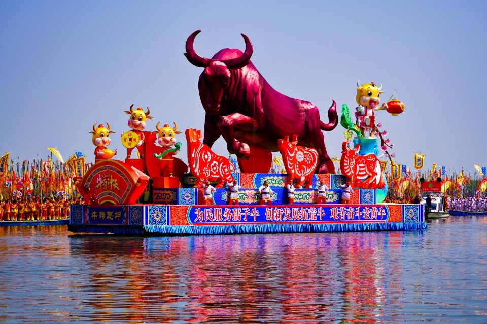 On the day of the Qintong Boat Festival, thousands of people poured into the viewing platform. When the wonderful folk performances on the stage are over, with a loud salute blasting into the sky, the colorful smoke diffuses, and the Qintong boat competition officially begins. First of all, the sacrificial ship sailed into the lake area in the center of the stage of the meeting ship, followed by several tribute ships representing local culture, economy, and life. Secondly, there is a dragon boat immediately after another. Finally, there is the local Zhuzi boats in Qintong, with colorful flags fluttering, dry bamboo dancing, drums clamoring, and everyone responds.