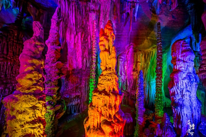 The stalactites in the cave are of different sizes, weird and strange shapes, and they are full of dreamlike colors.