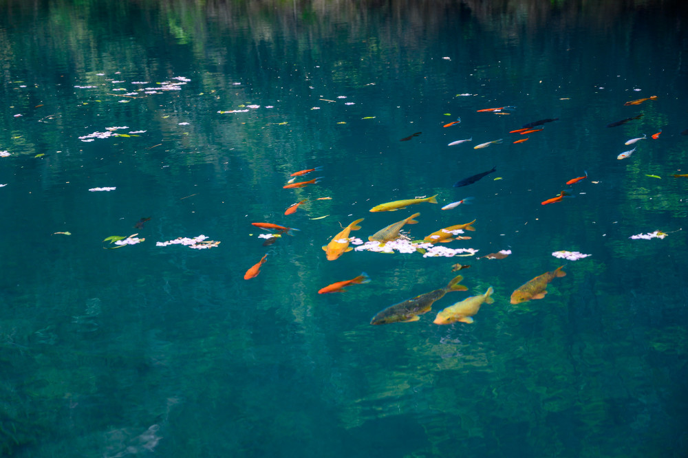 Looking at the swimming fish in the secluded pond in front of me, I can’t help but think of this poem by Liu Yuxi. The water in the pond is exceptionally clear, and the fish plays in it, as if floating on the water. How can this scene not make people linger.