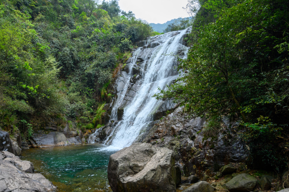 Continue to walk up the mountain. Before reaching the end, I have heard the sound of the rapids of the waterfall. The waterfall is the “Longtan Waterfall” with a drop of about 25 meters and a width of about 5 meters. Although it cannot be compared with the spectacular waterfalls, This is what makes people appreciate the beauty and grace of Jiangnan Waterfall, this is the scenery of Jiangnan landscape.