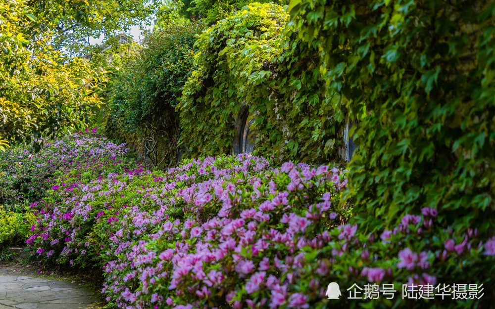 Rhododendrons are divided into trees and shrubs. Rhododendrons in the Jiangnan area are mainly shrubs. Just like in the azalea garden, shrubs are mostly azaleas, and trees are only auxiliary. The taller bushes can reach the height of one person. If visitors walk into these bushes full of flowers, they will be hidden among the flowers in an instant.