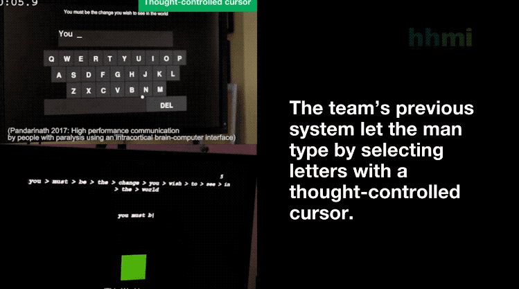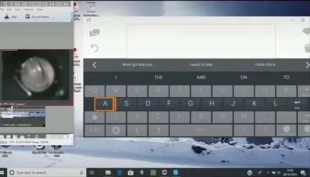 Next, each key in the row will be highlighted in turn. Similarly, when the key is highlighted, the user selects the desired key by tightening the ear muscles. In this way, paralyzed patients can “type” to express themselves. Of course, in order to speed up this process, a Predictive text system , The system will display the complete words that may be entered according to the letter currently selected by the user.