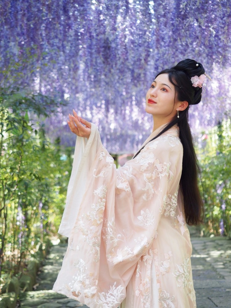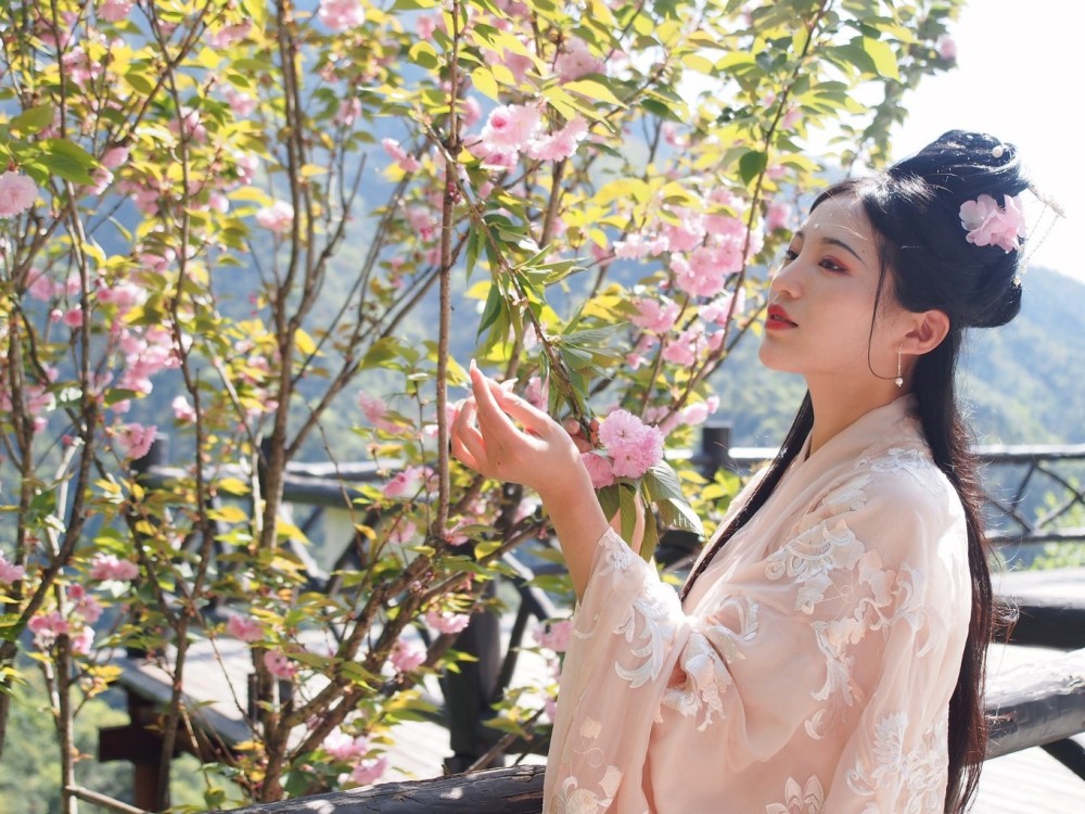 Wearing Hanfu under the most beautiful cherry blossom forest is a tribute to the most beautiful spring.