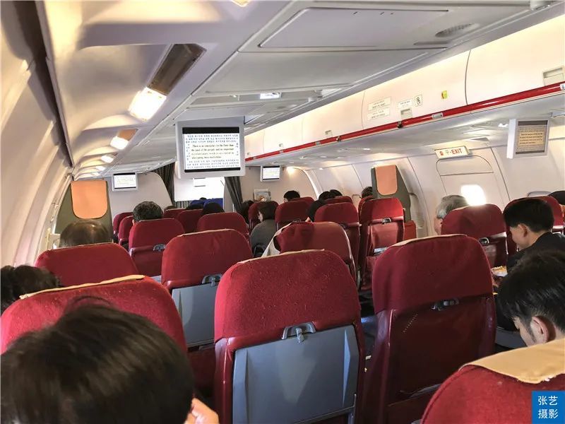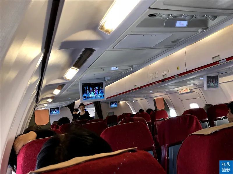 The picture shows the interior of the cabin. The passenger seats are all covered with red seat covers, and there is a small monitor every some distance, showing some programs. Compared with the airliner flights we usually take, they are similar to each other. It’s not bad in terms of comfort and speed.