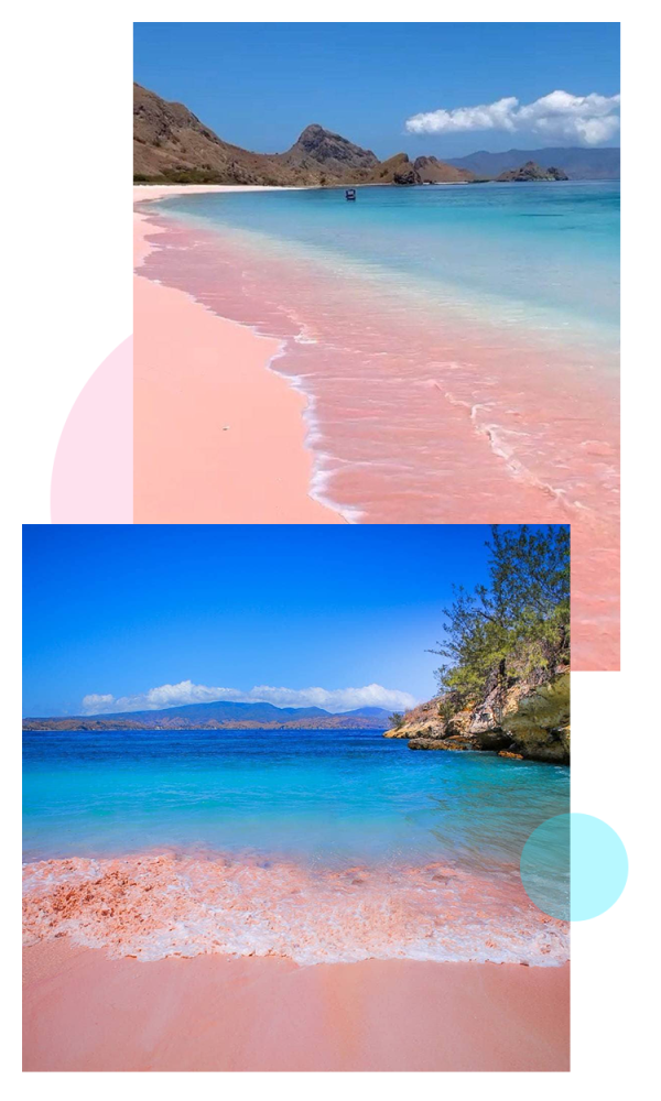 The crystal clear blue sea meets the pink beach, and you can see colorful marine life even in shallow waters, no wonder even the ancient lizards Komodo They all want to settle in this salty macaron.