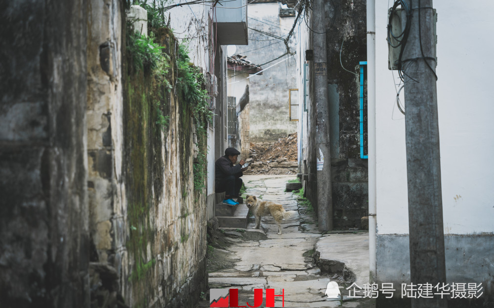 I don’t know how many turns in the alley, but I only saw an old man squatting in front of his house to eat. There was a big yellow dog in front of the old man, staring eagerly at the old man’s rice bowl. I wanted to go up and have a few words with the old man, but the old man had no choice but to speak Wuyuan dialect, so it was really difficult to communicate, so he just said hello to the old man and continued to wander around the alley. To be honest, if you shoot in such an alley, you will definitely be rewarded.