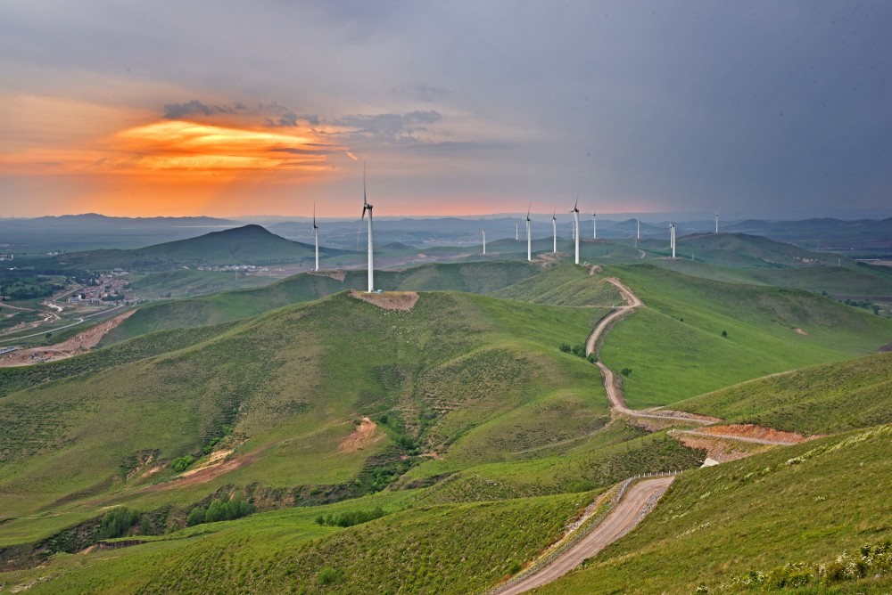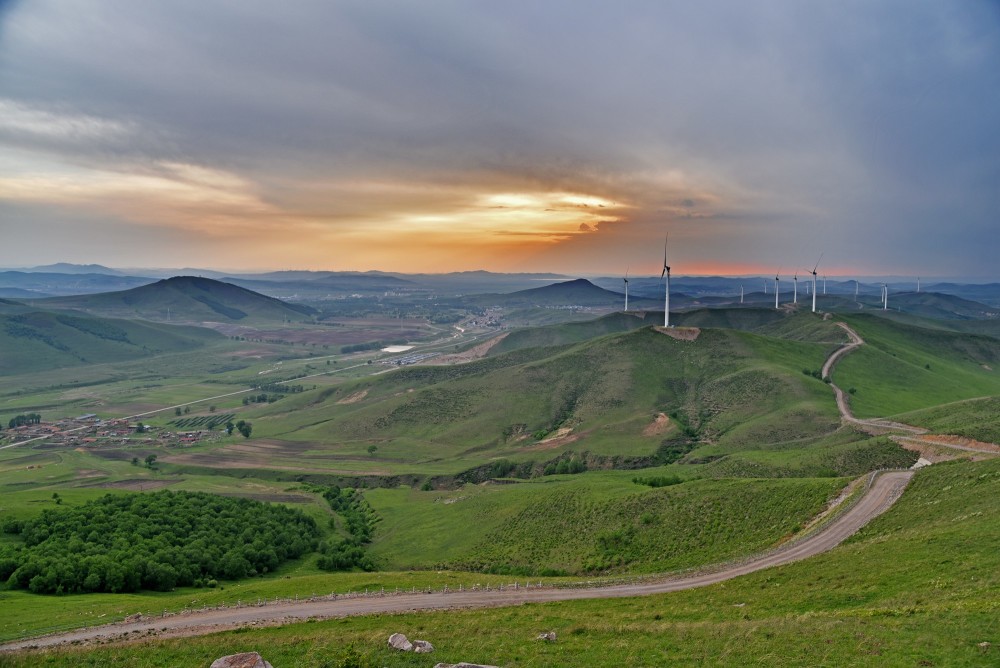 The vast sky, the green grass, the rolling hills, the windmill rotating in the wind, and the scenery in front of you suddenly brighten your mood. The sun gradually set, and a cloud was reflected in the sky in the distance, adding a warm tone to the picture. The close-up and long-distance scenes are good scenery whenever you take a shot.