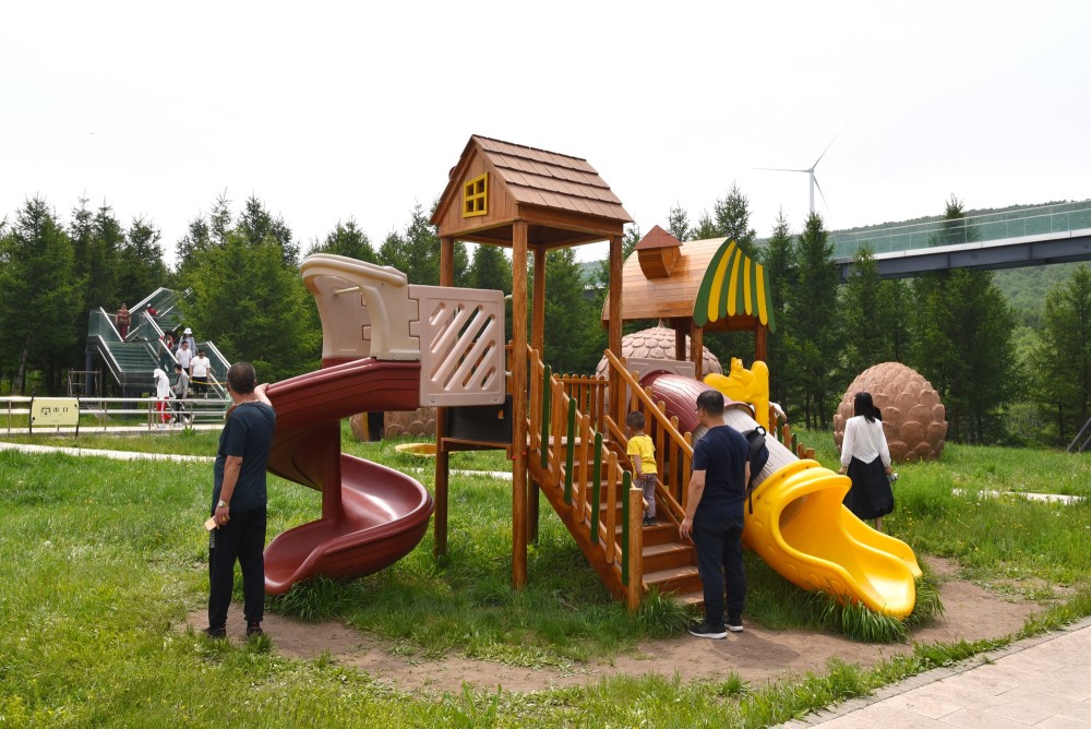 Jungle tribe, children’s paradise In addition to watching the scenery, there are many interesting projects in the colorful forest. When you walk into the jungle tribe, there are small amusement facilities on the grass, and there are many cute shapes. The children are crawling and sliding inside, and they are having fun. Excited. The wooden plank road on the opposite mountain leads to the top of the mountain, and you can climb up to Yuntingju to overlook the forest and grassland.