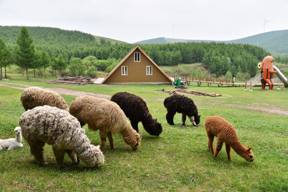 In the forest pastures, free-range horses, alpacas and fawns graze and walk leisurely on the grass, seeming to ignore the tourists coming and going. Only when they are very close, do they retreat vigilantly or pass by. . The deer should be more vigilant, staring from a distance on the hillside to observe the surrounding movements.