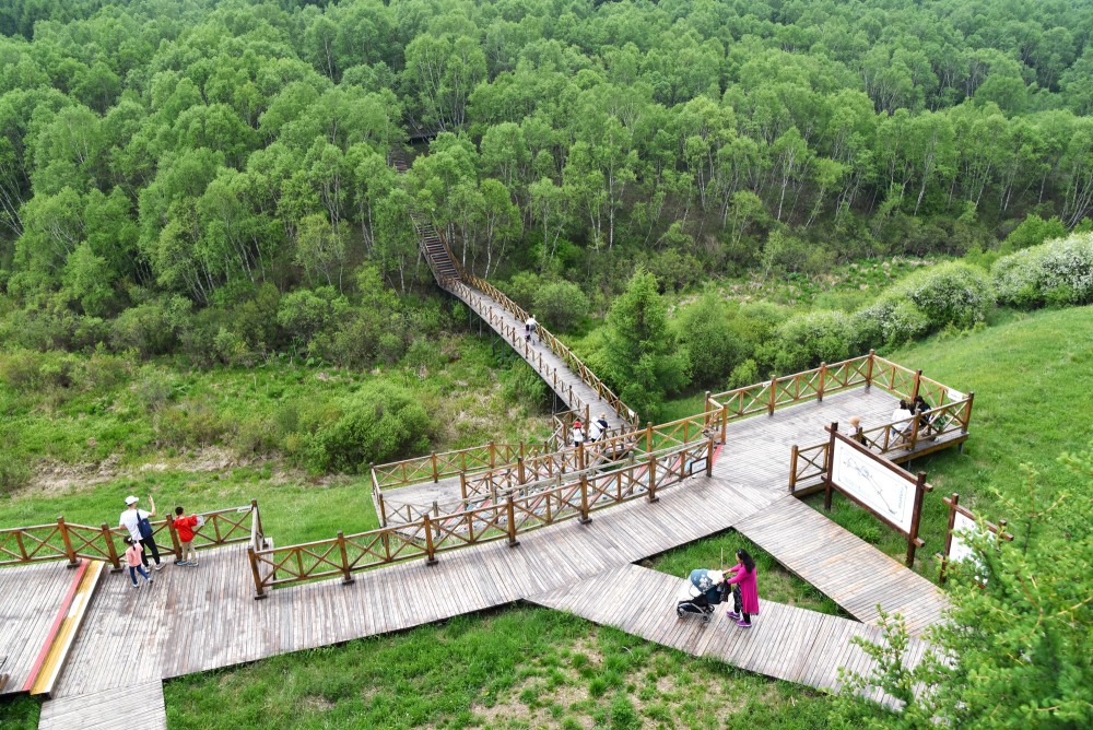 To enter the scenic spot, you can take a small sightseeing train or a walking tour. The small train has stations in the middle of the Tianjing Lake and the forest pasture. You can take the car if you don’t want to go, which is very convenient. If physical strength permits, hiking on the boardwalk is a recommended way to visit. It is very pleasant to slow down the hurried pace, go sightseeing while walking, and change the scenery.